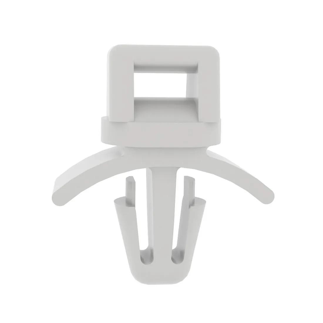 Cable tie holder with push-mount stem for quick, secure insertion into pre-drilled panel holes.