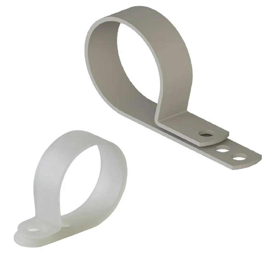 Nylon clamp with adjustable locking feature to accommodate various cable bundle sizes securely.