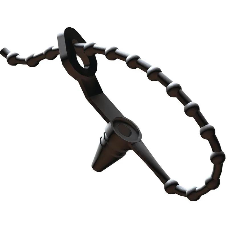 Flexible beaded tie for bundling cables, offering a reusable and quick fastening solution.
