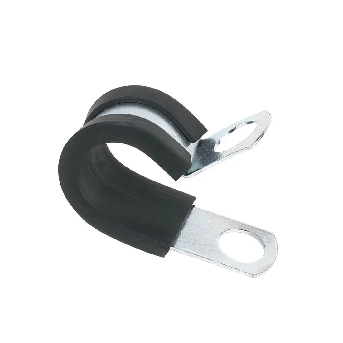 Steel clamp with rubber cushioning to securely hold cables while reducing vibration and abrasion.