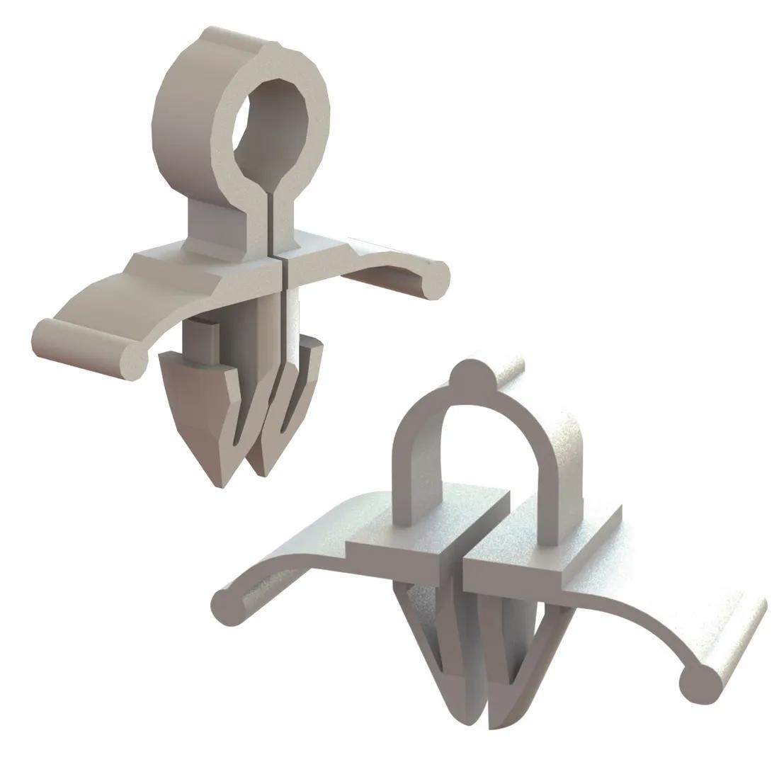 Clip designed with a split opening for easy insertion and securing of cables without disconnection.