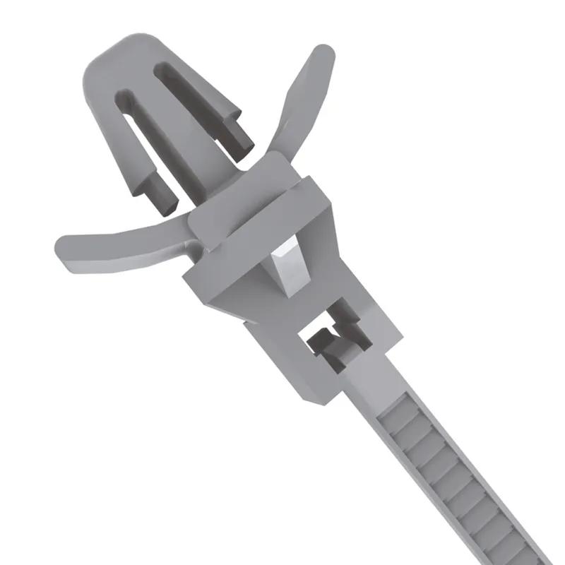 Cable ties with integrated push mount for snap-in attachment to panel holes, ensuring secure bundling.