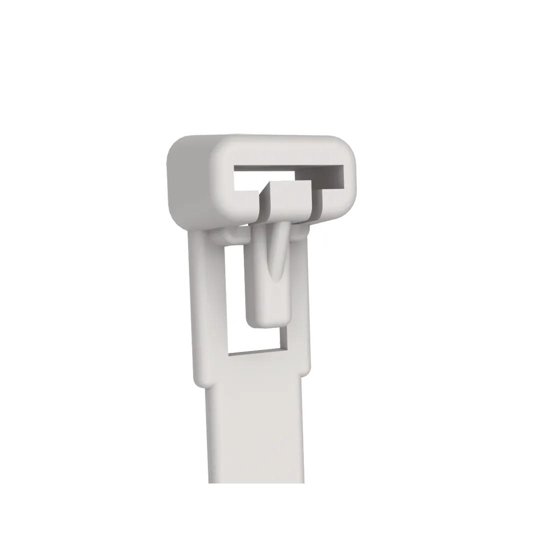 Hook-and-loop cable tie with a release tab for quick removal and re-bundling of cables.