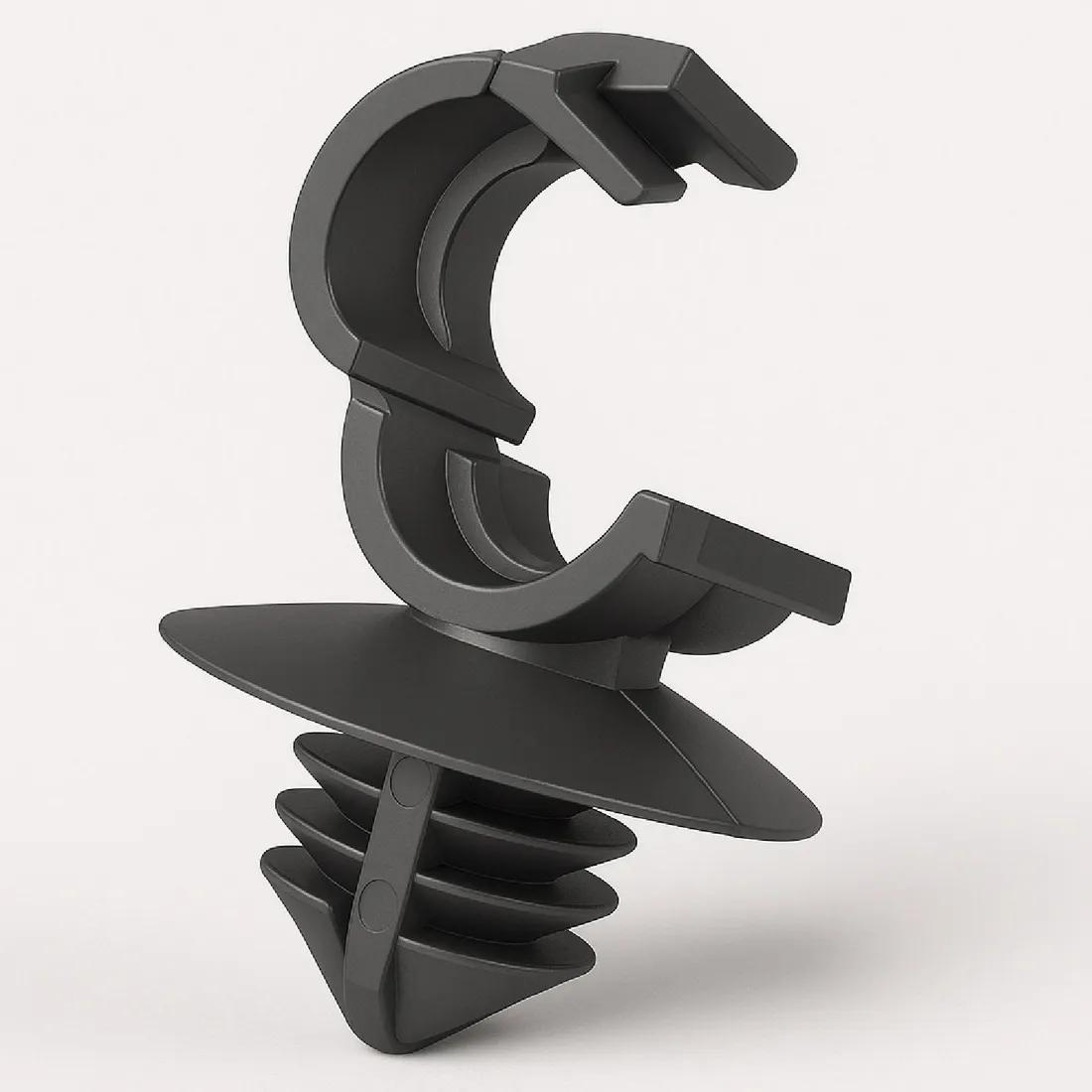 Clamp with hinged design and locking feature for easy cable installation and secure bundling.