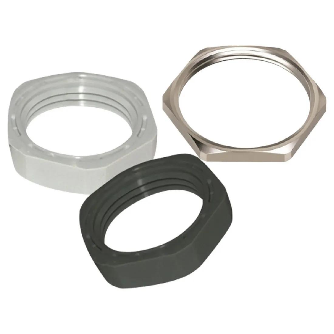 Locknuts for cable glands. Made from PA or Brass. Used in combination with Sealing Washers (sold separately).