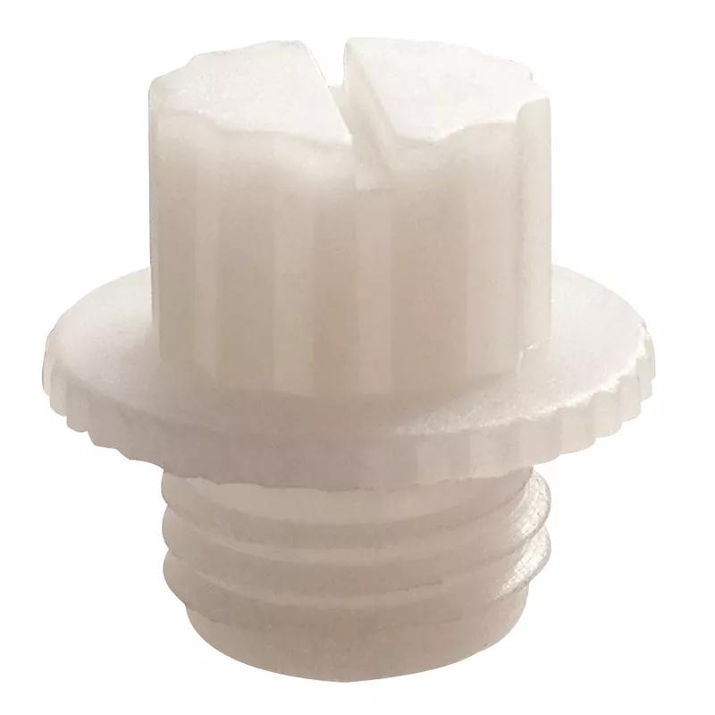 Unique head design allows the user to apply or remove this plug by hand or with a 12 point socket head, screwdriver or wrench. Used to protect NPT threaded ports. Optional O-ring gives this part a watertight seal for superior leakage protection. Recommended when strength and abrasion resistance are desired. The nylon material absorbs paint, keeping paint flakes to a minimum. Nylon is able to withstand higher temperatures than HDPE. Nylon is recommended for intermittent temperatures of 230F (110C) to -40F (-40C).