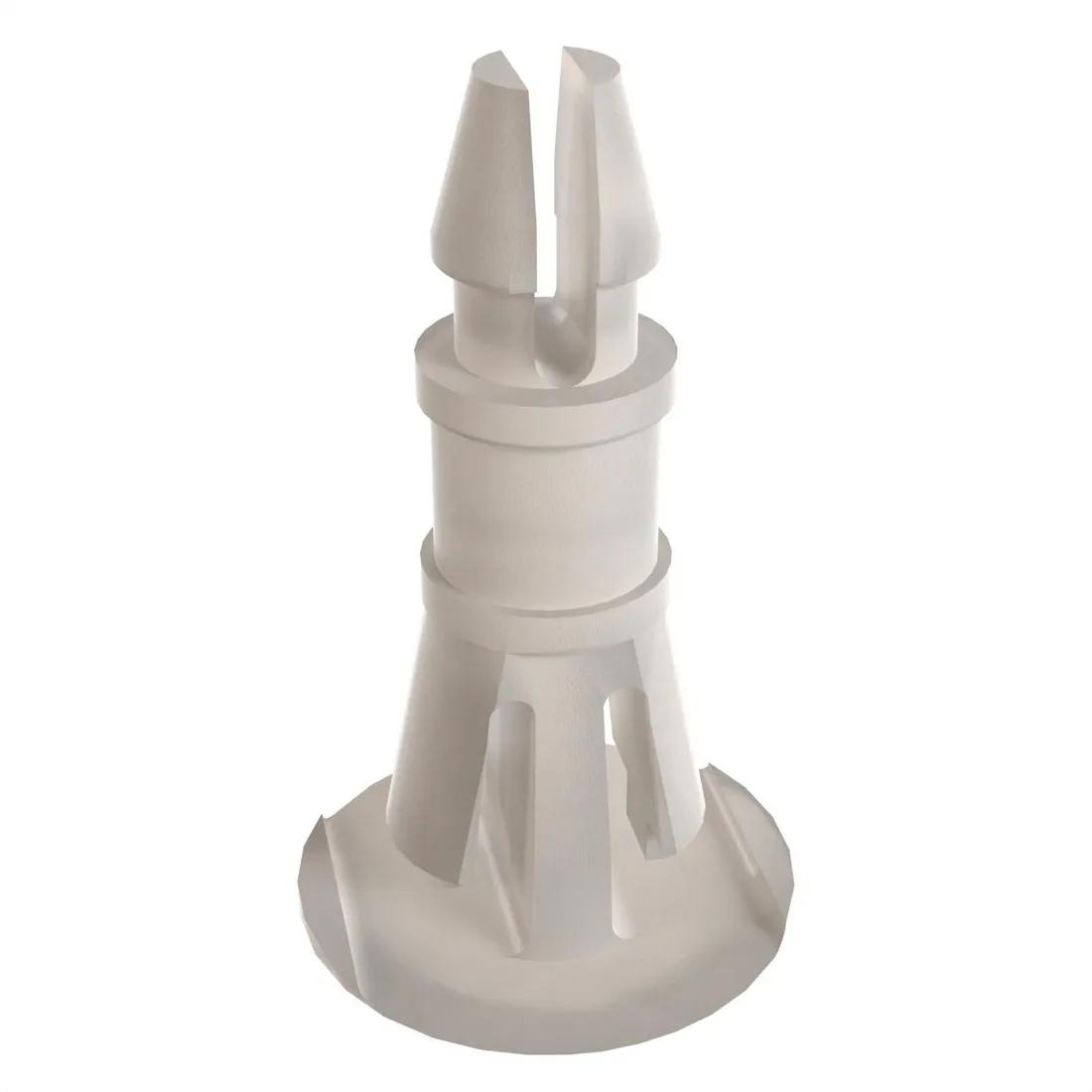 A support that mounts from the underside of a panel through a round hole. Holds the board securely when top-side mounting isn’t possible.