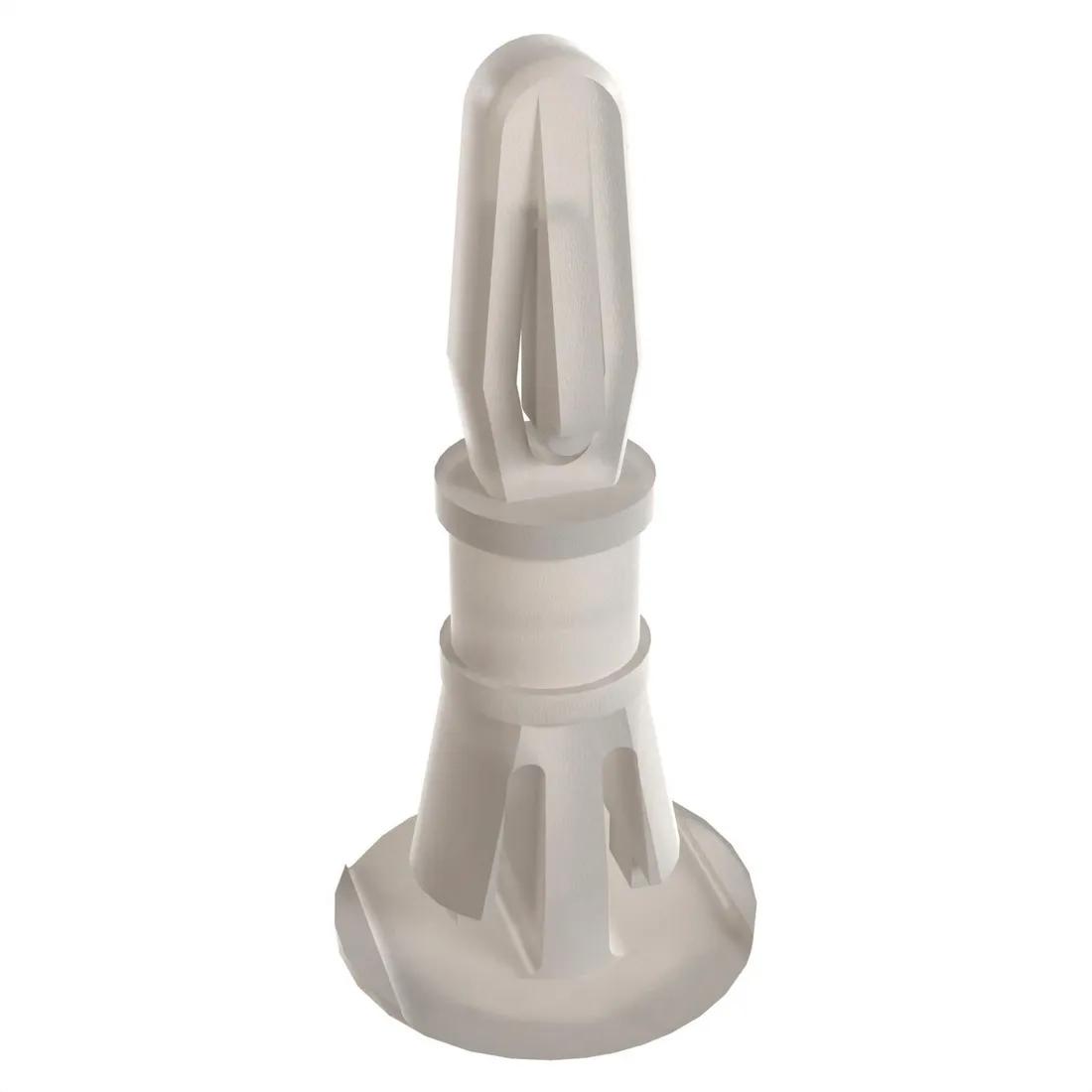A support that mounts from the underside of a panel through a round hole. Holds the board securely when top-side mounting isn’t possible.