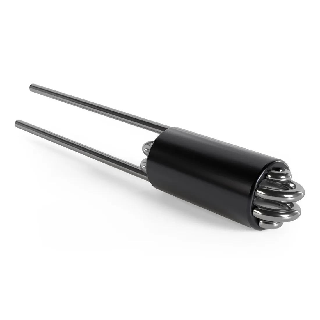 Small ferrite beads with wire wound around them. They act as miniature filters in circuits to reduce high-frequency noise and improve signal stability.