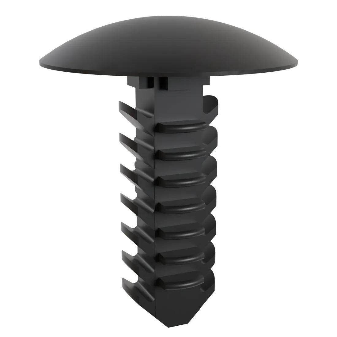 Ribbed design ensures fast and easy installation, while securely holding various materials like wood, metal, foam, rubber, and plastic. When pushed into a hole the flexible ribs deflect then spring back to lock securely in place.