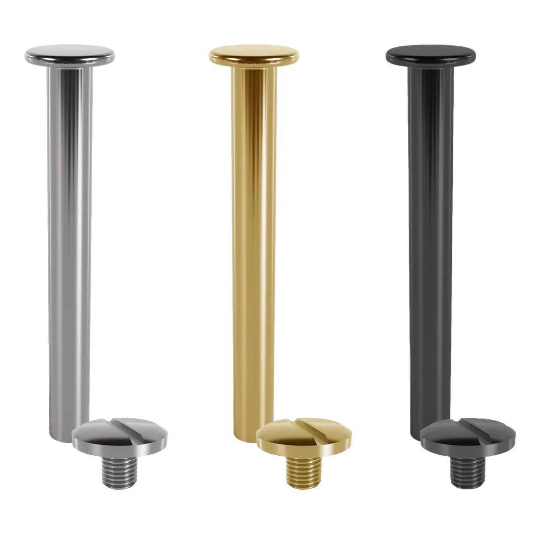 Male and Female parts sold separately. 9mm Head Diameter. Available in Nickel Plated, Brass Plated or Black. Male and Female parts thread together securely. Ideal for multiple panel fastenings, such as swatch cards. To suit 5mm Hole.
