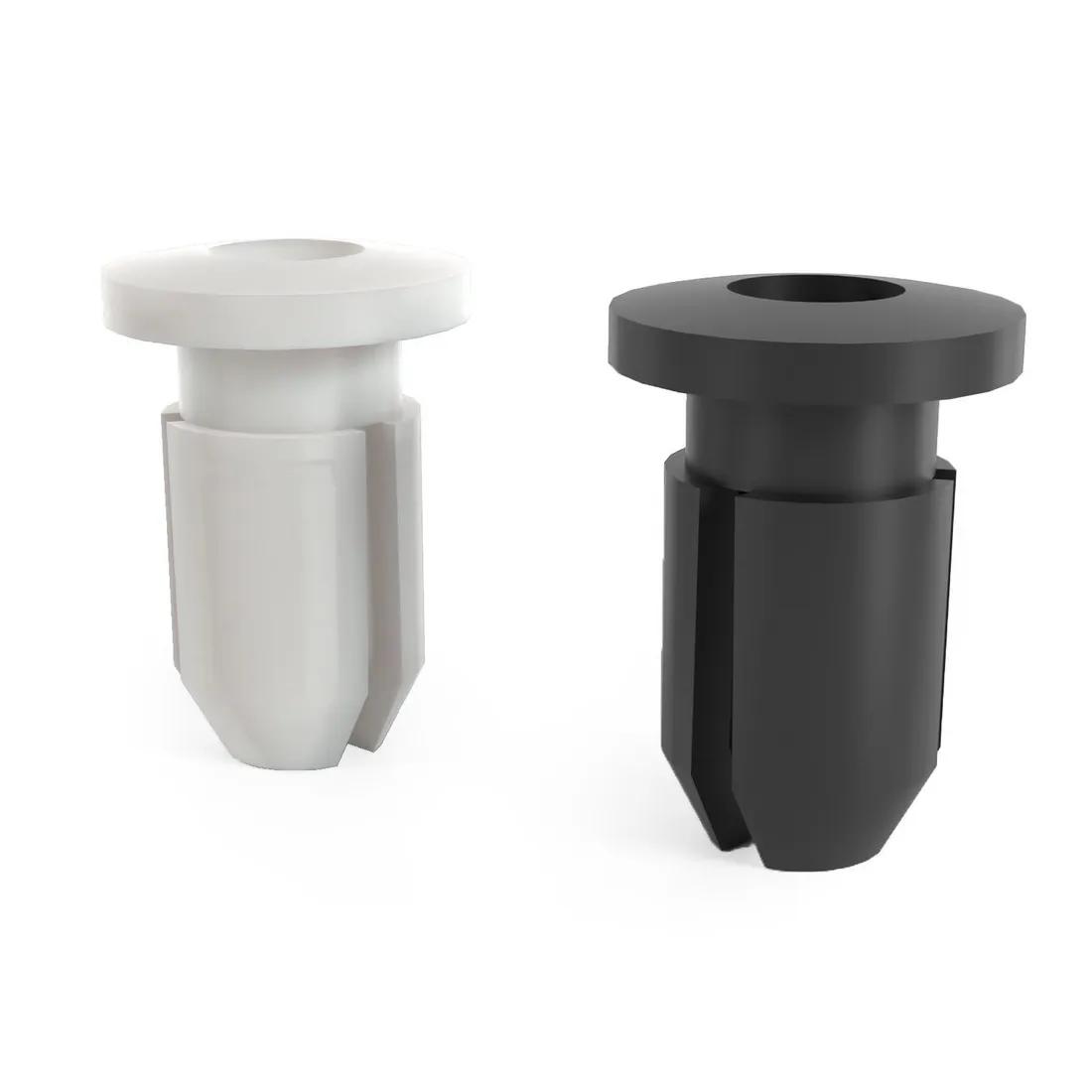 To install, push the grommet into the removable panel and then the desired plunger into the grommet. When the panel and plunger are pushed into the fixed panel, it locks them together. Simply pull on the plunger to remove the non-fixed panel. Grommet and mating plunger are sold separately.