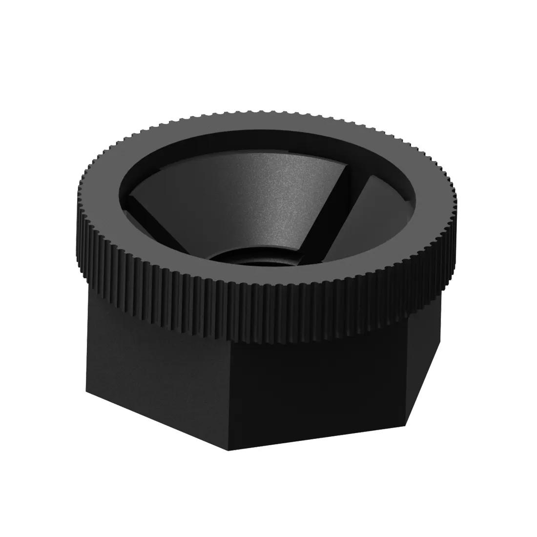 To press fit over a threaded stud. To install, push down the length of the threaded fastener to desired location and lock with a 180 turn.