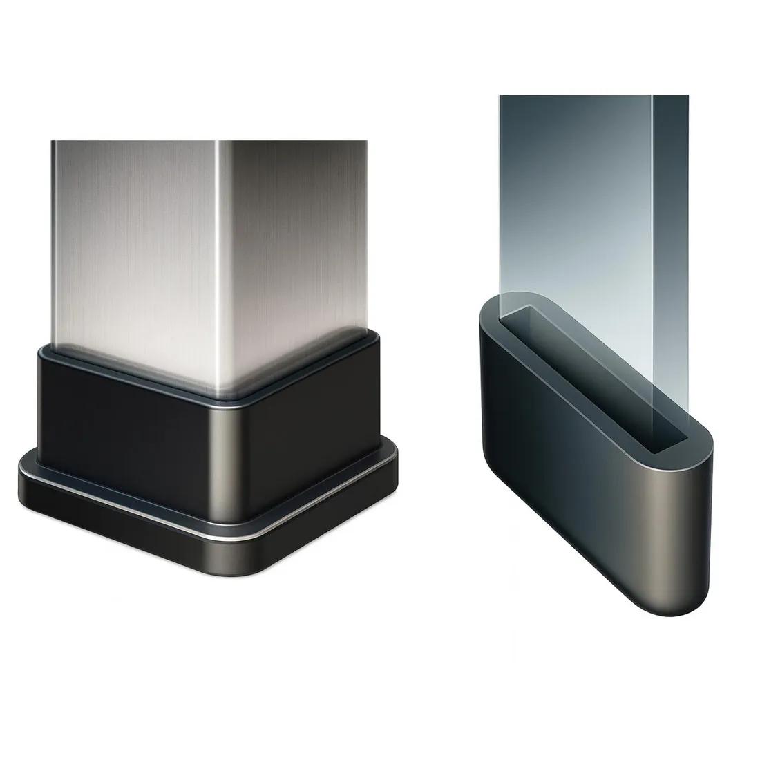 Ferrules to suit right-angled and flat bars. Can be used as feet. Ridge on edge of angled base provides extra stability. Protect floor surfaces.