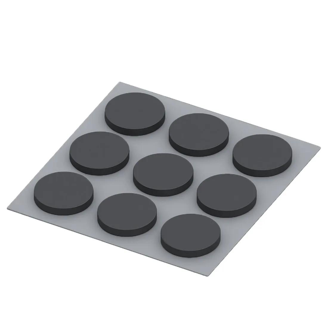 Flat pads made of rubber or similar material that prevent slipping. Place them under objects like electronics, furniture, or equipment to keep them from sliding around. They provide grip and also cushion the item, protecting both the item and the surface beneath from scratches.