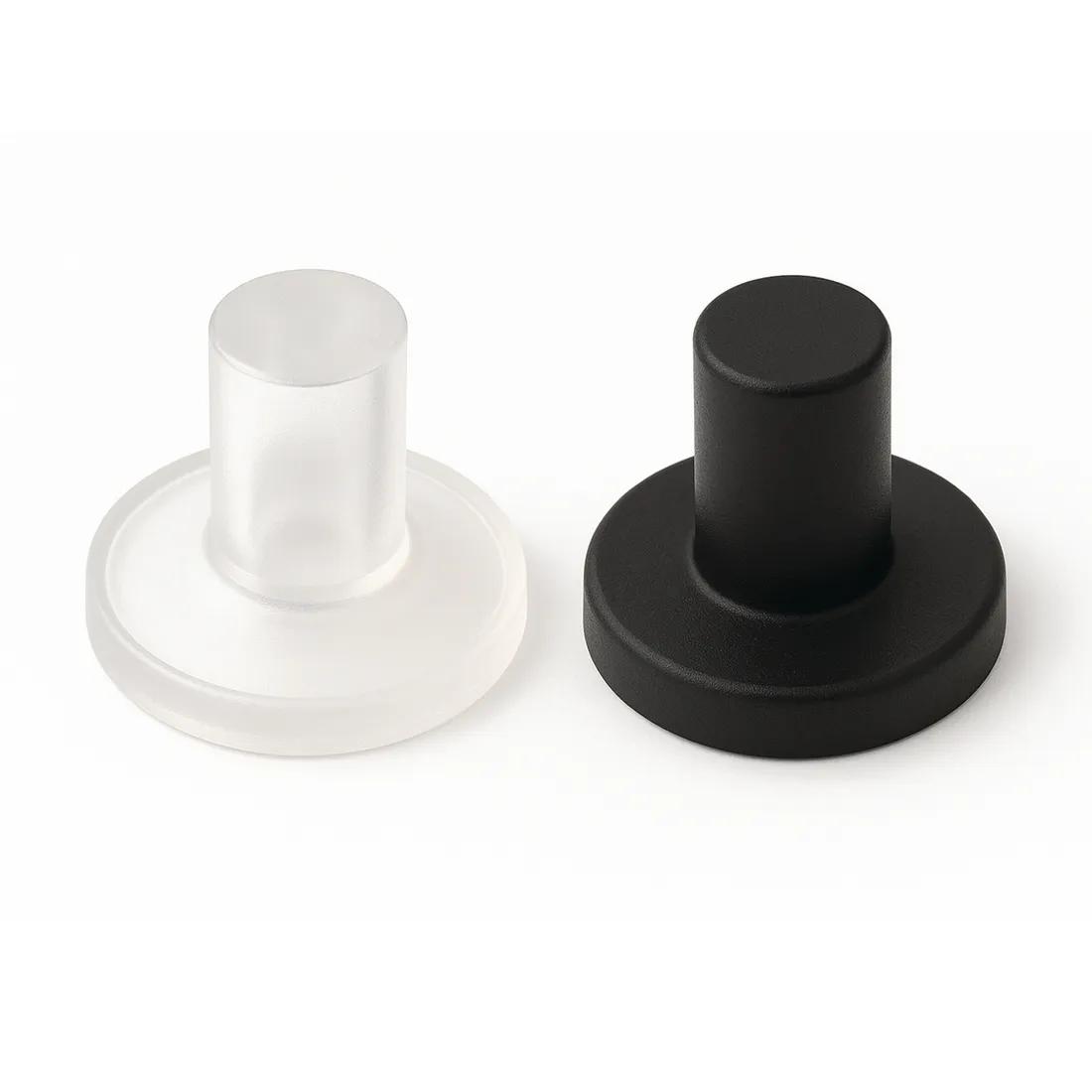 Suitable for glass shelf and table-top supports. Concave head provides a light suction effect.