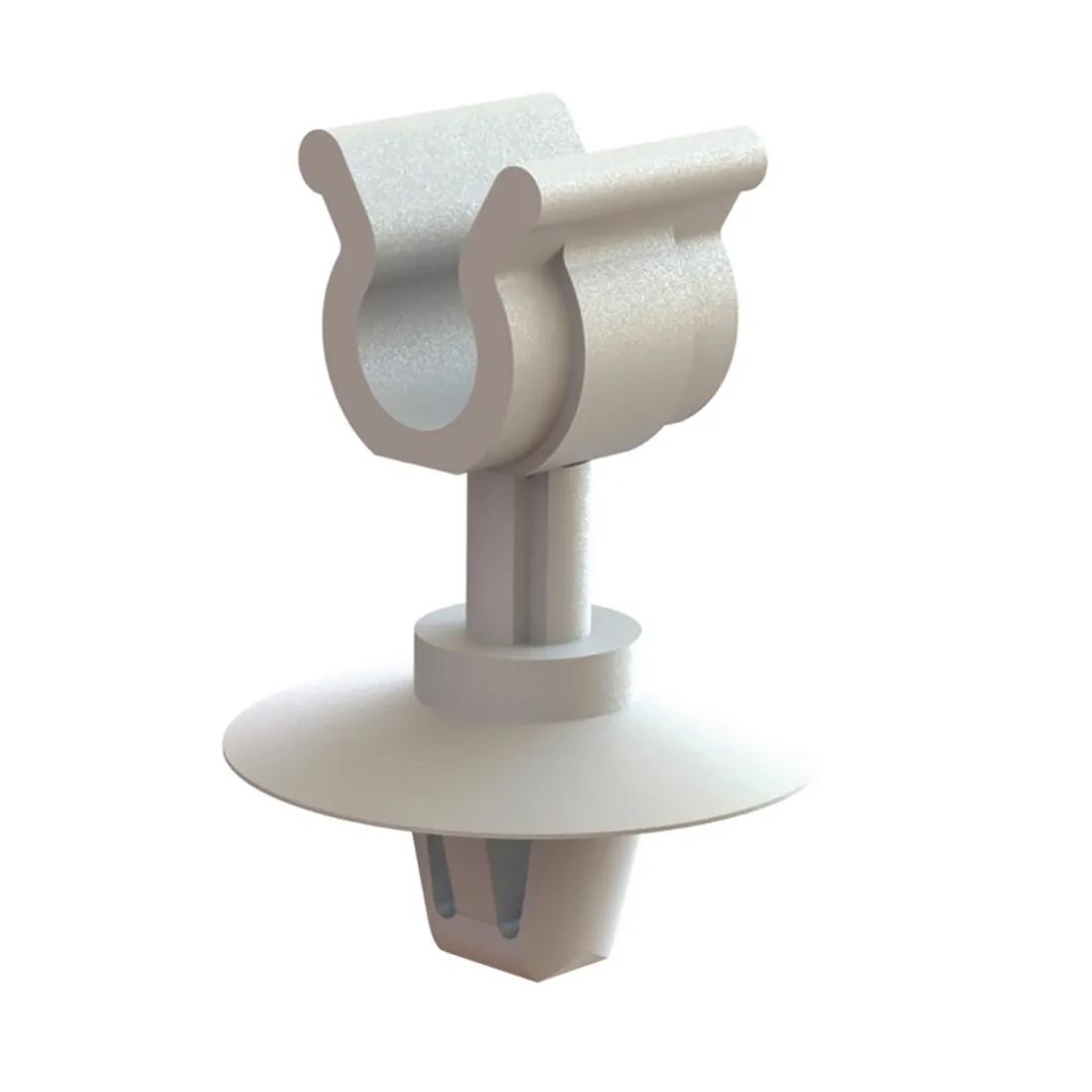 A clip that secures tubes or small pipes to a panel or surface. Helps organize routing and prevents movement or vibration.