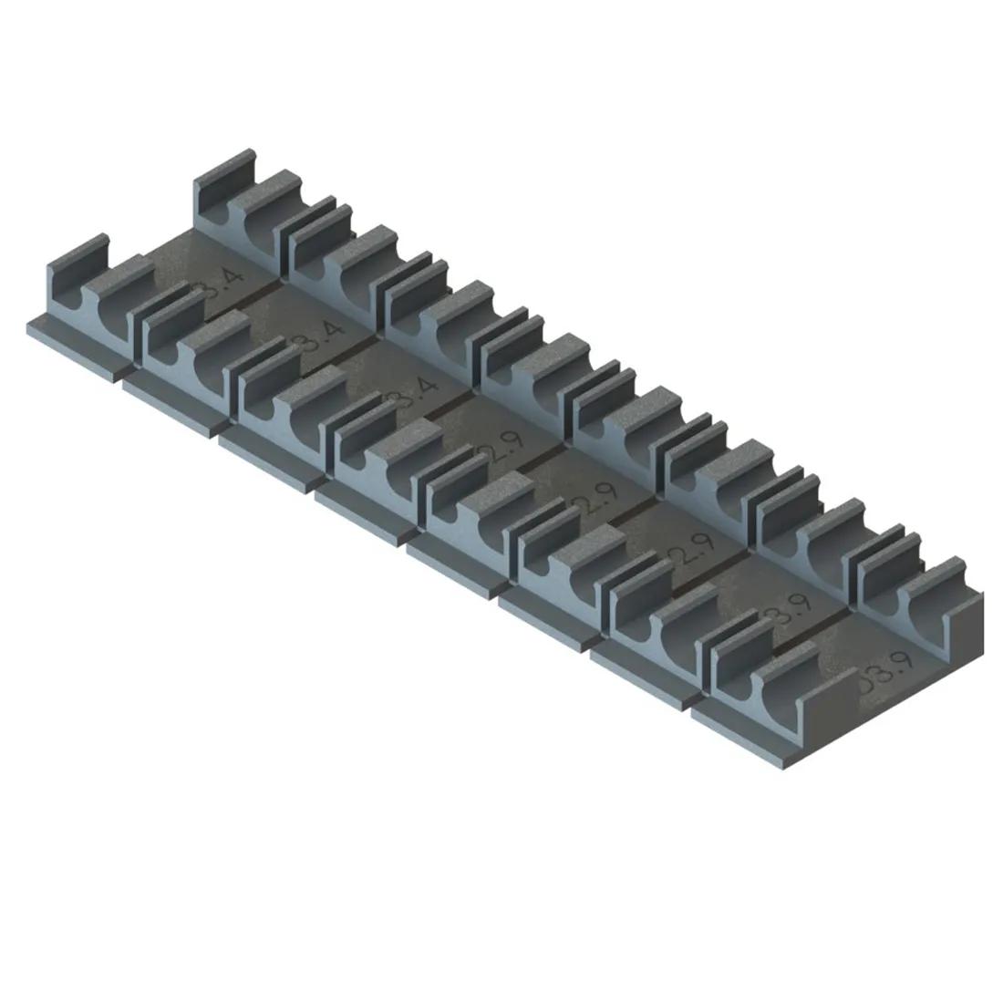 A clip designed to hold fibre or cable couplers securely in place. Ensures stable connections and reduces movement during operation.