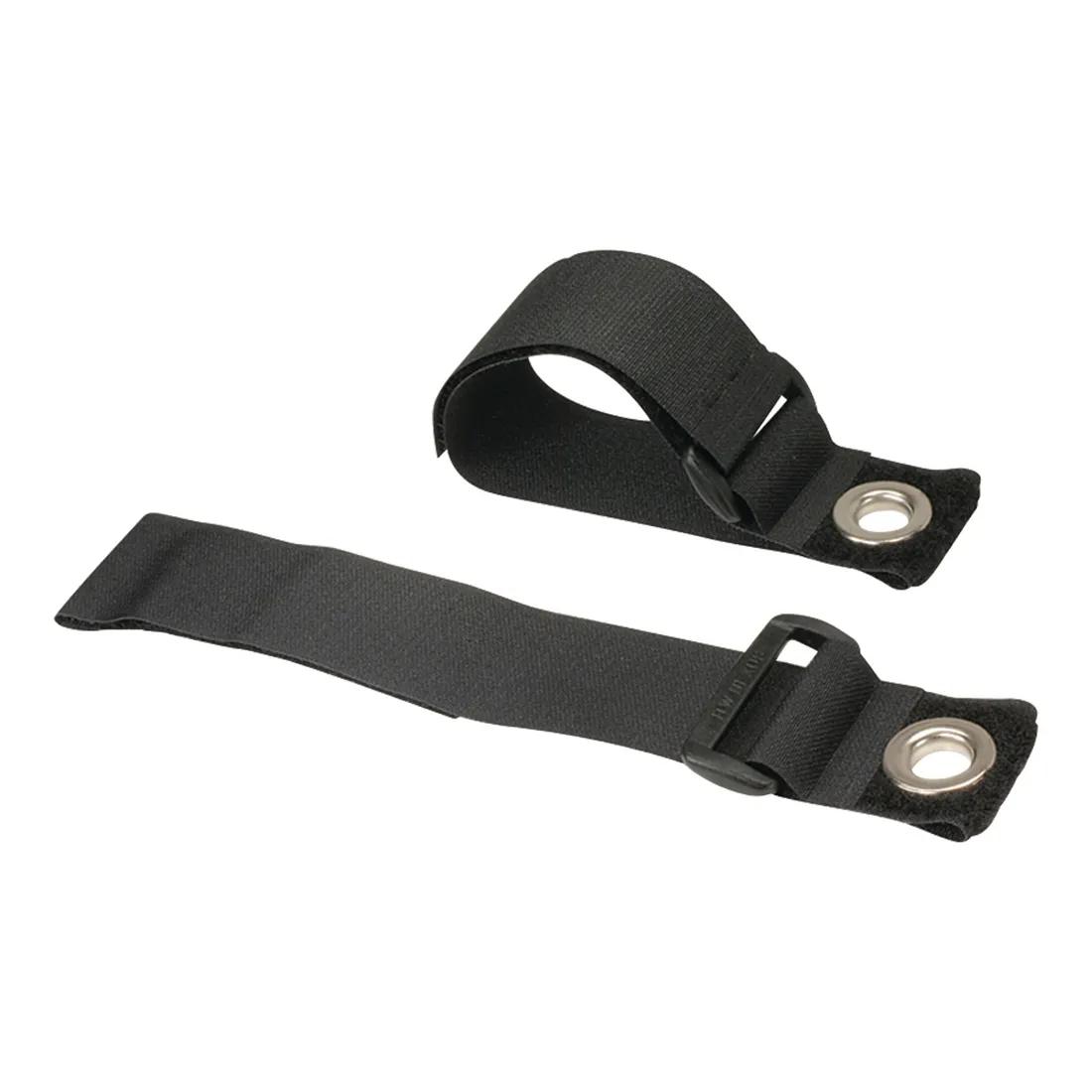 Hook and loop design of strap holds hoses securely while allowing the hoses to expand or contract as pressure changes. Heavy duty version is reinforced with Ballistic Cordura Nylon and is ultrasonically welded to a 11⁄2” hook and loop material. All hardware is nickel-plated steel.