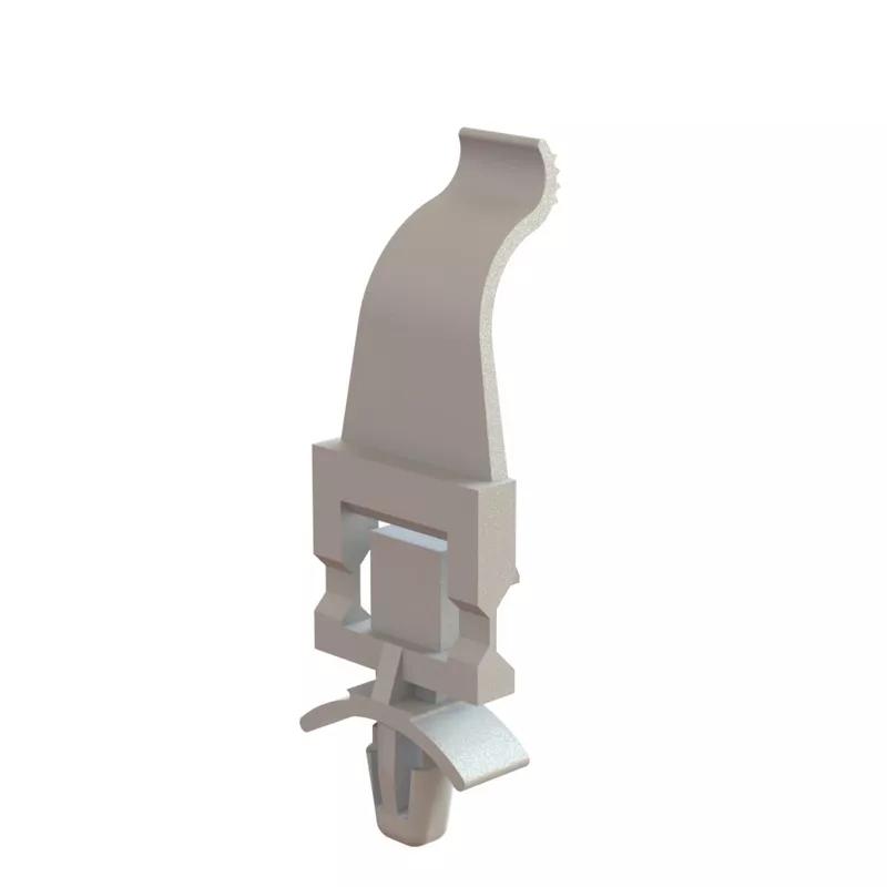 Flat cable clamp mounted on surface with push in fasteners.