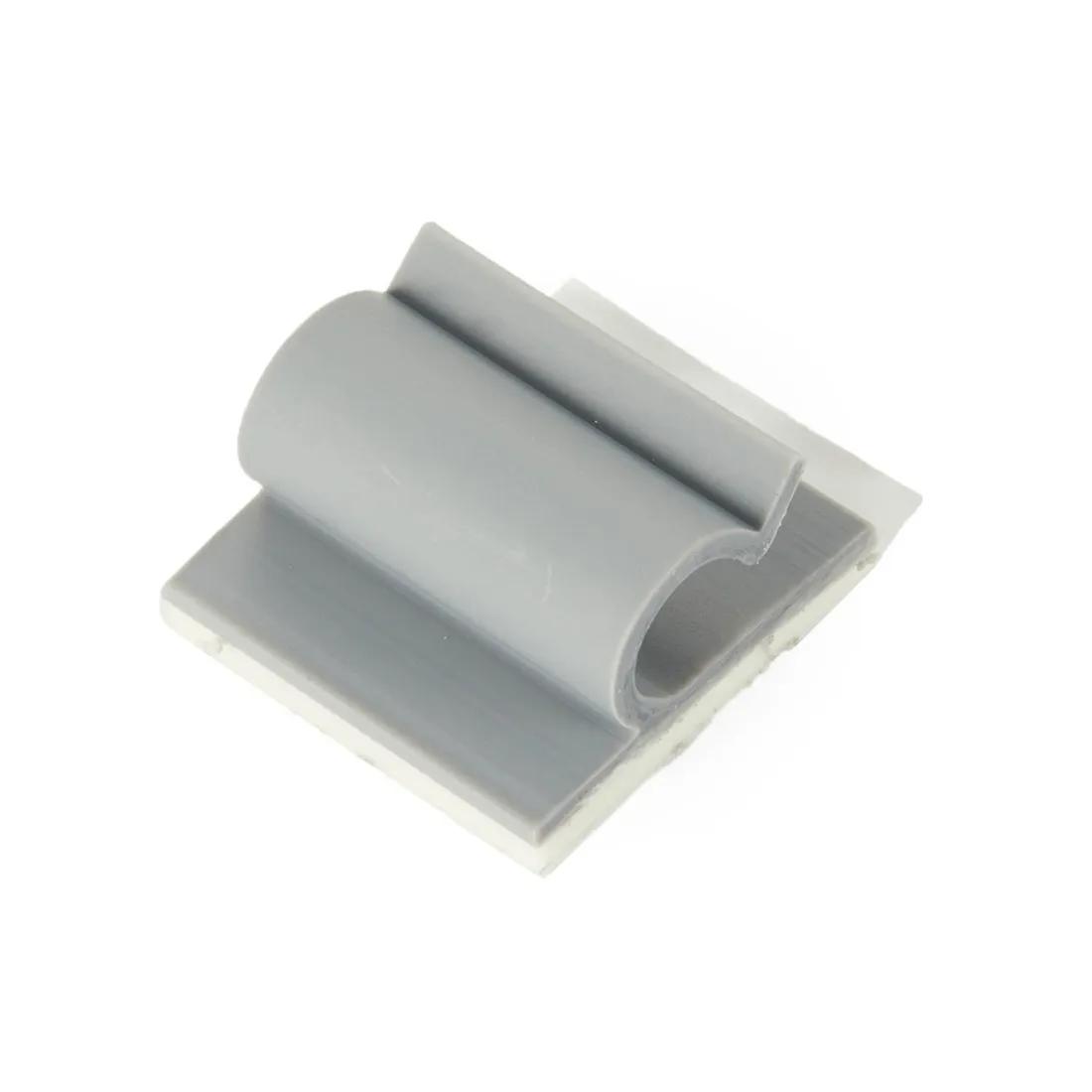 C-shaped cable clamp with adhesive base for quick, tool-free attachment of wiring or tubing.