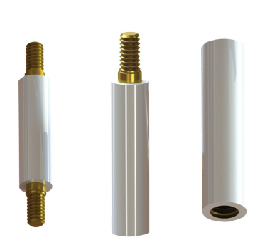 Nylon/brass standoffs, UL94 V-2, hand-installed, strong insulation for high-power PCB spacing.